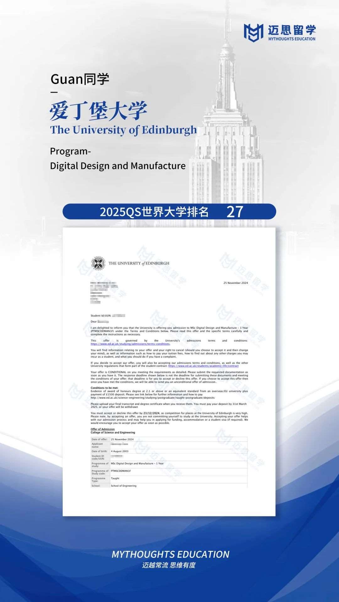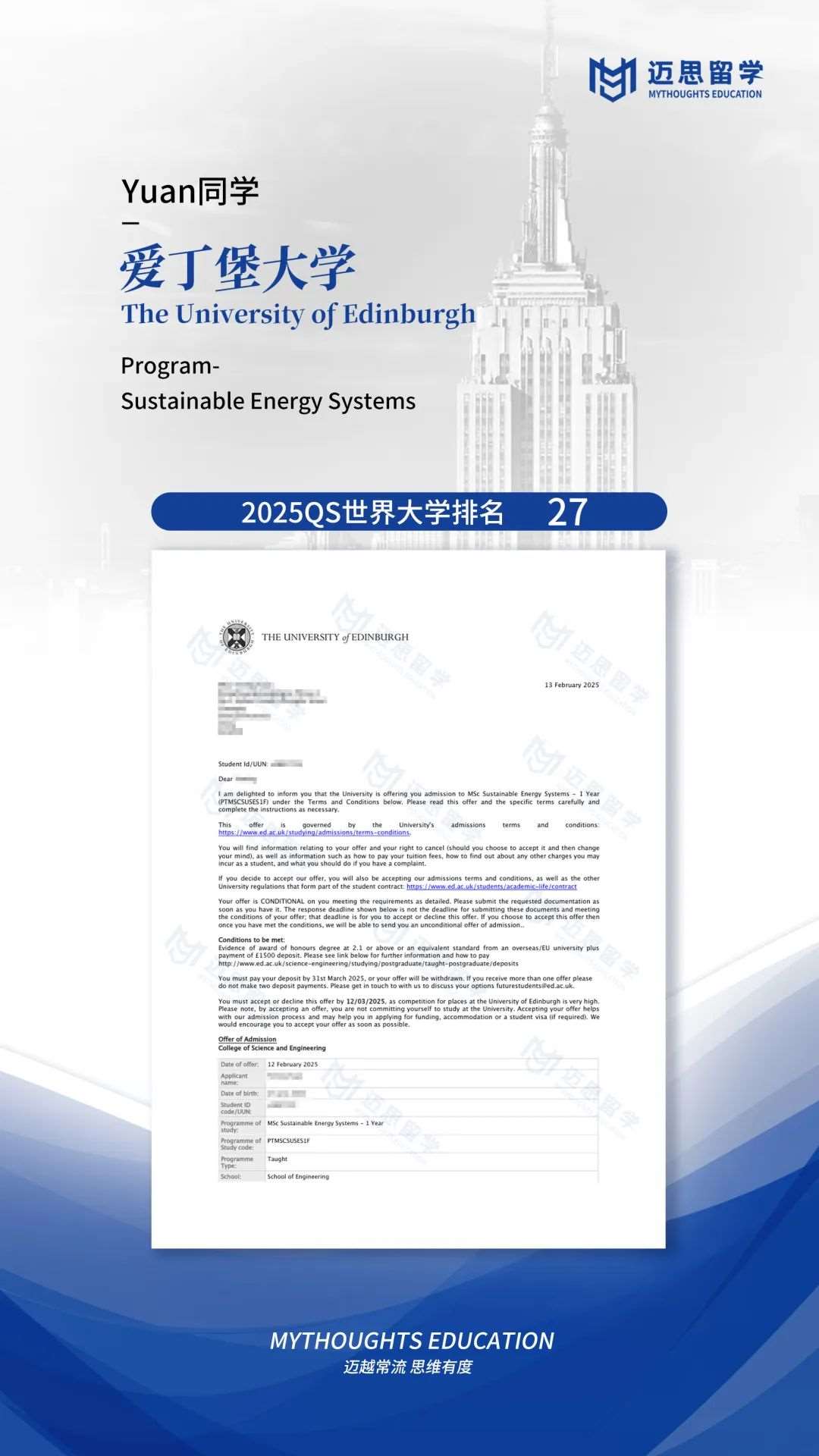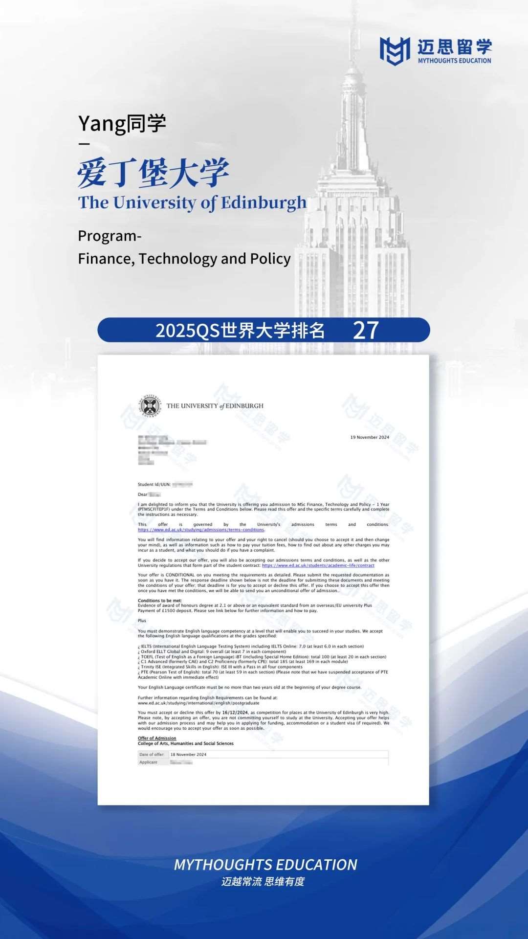 爱丁堡大学|六枚爱宝offer收入囊中,点亮古堡星空~