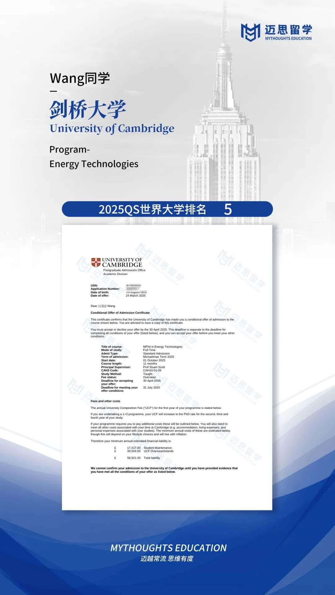 剑桥大学|再来一枚剑桥录取,能源领域里又将诞生一位大佬了~