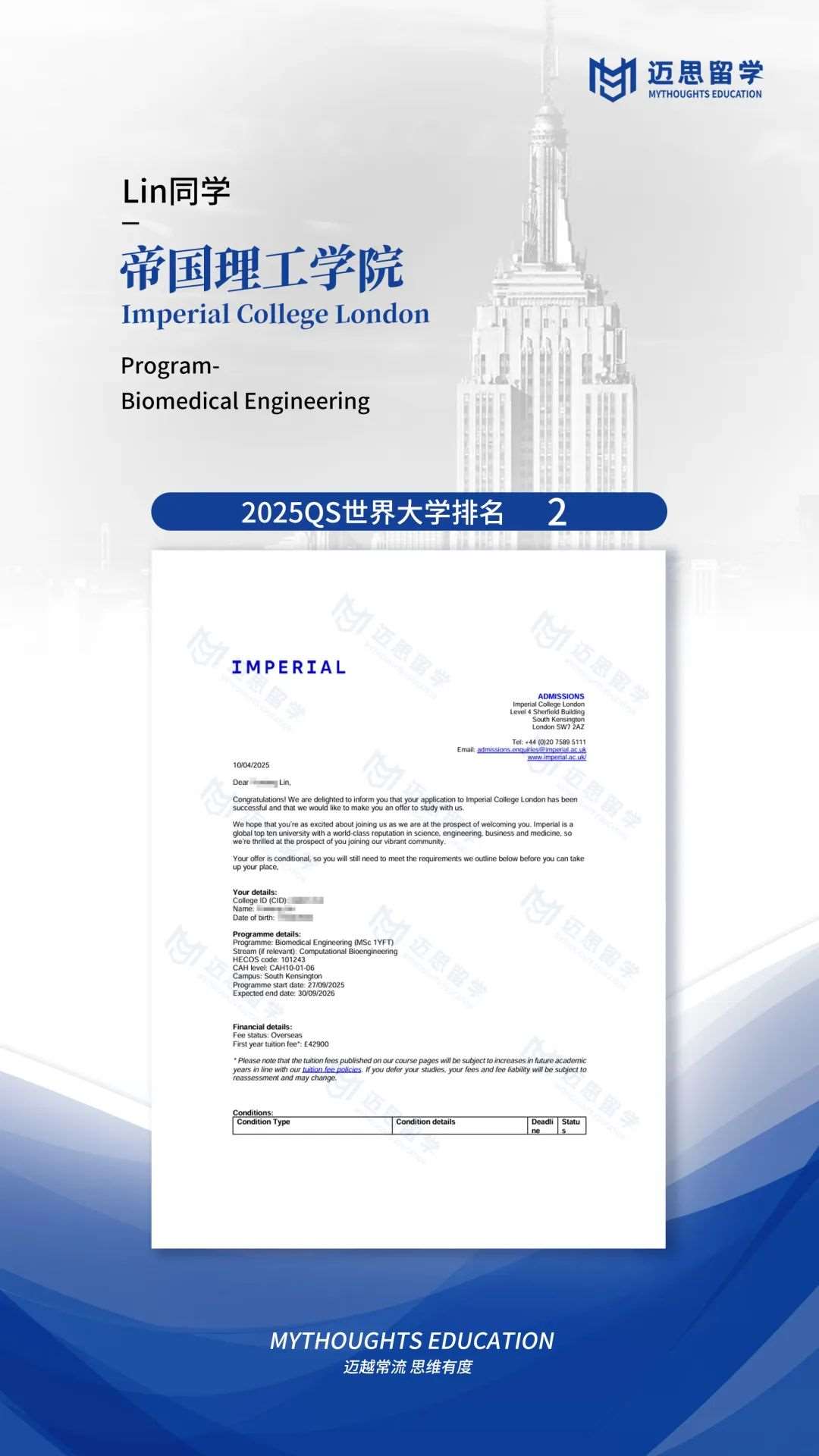 帝国理工学院|恭喜两位同学再获IC青睐,虽然有其他选择了,但该有的还是要有~