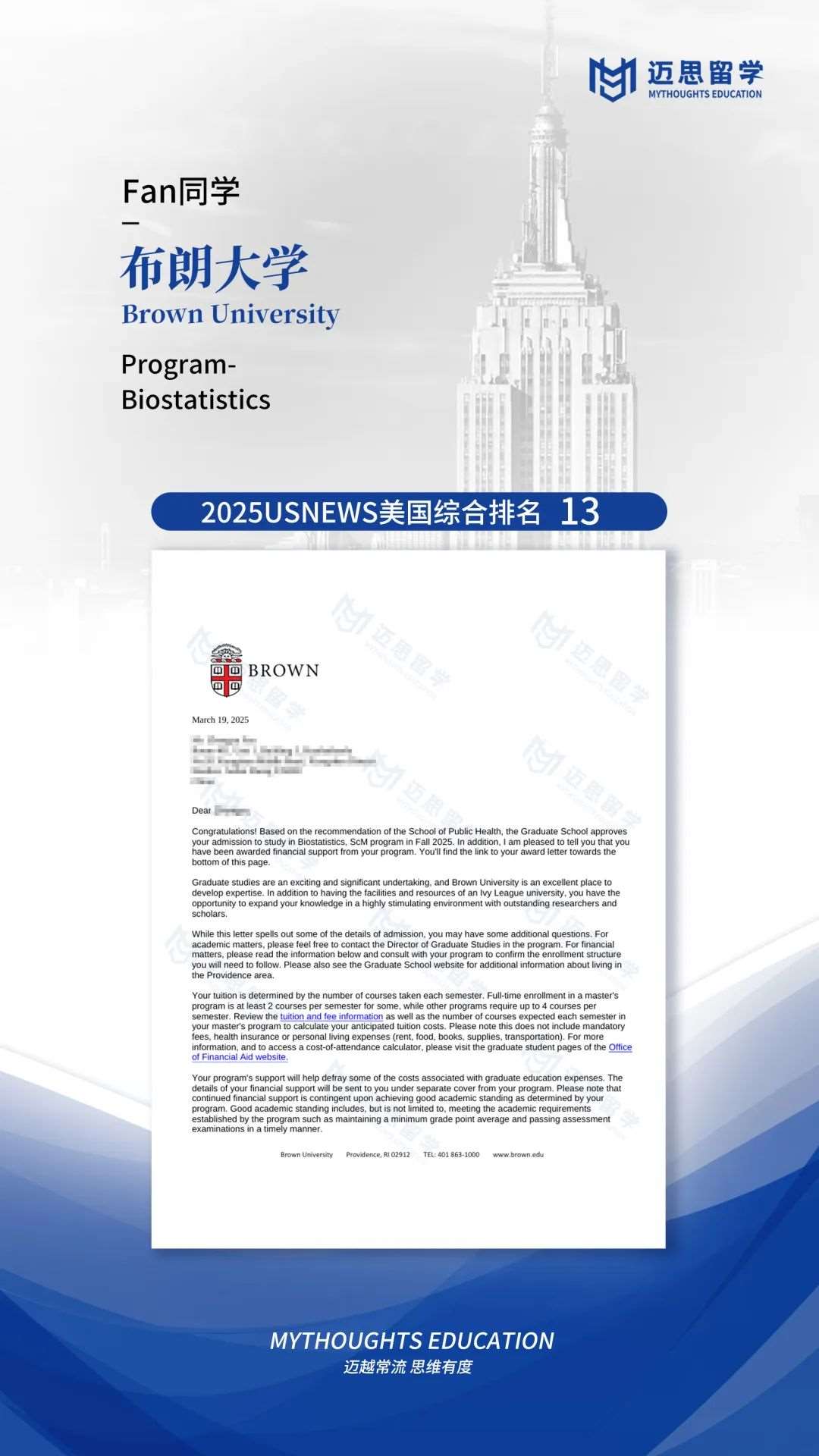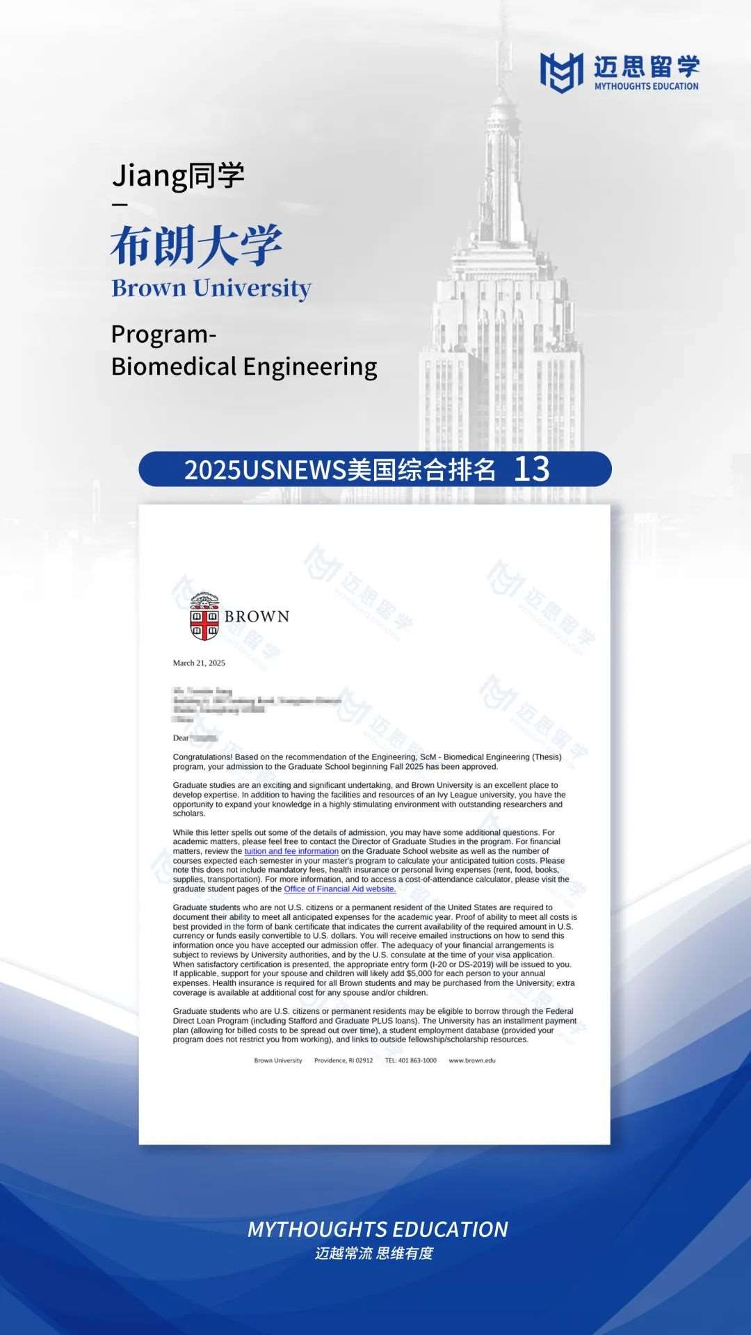 布朗大学|恭喜两位同学斩获藤校Brown,实现完美~