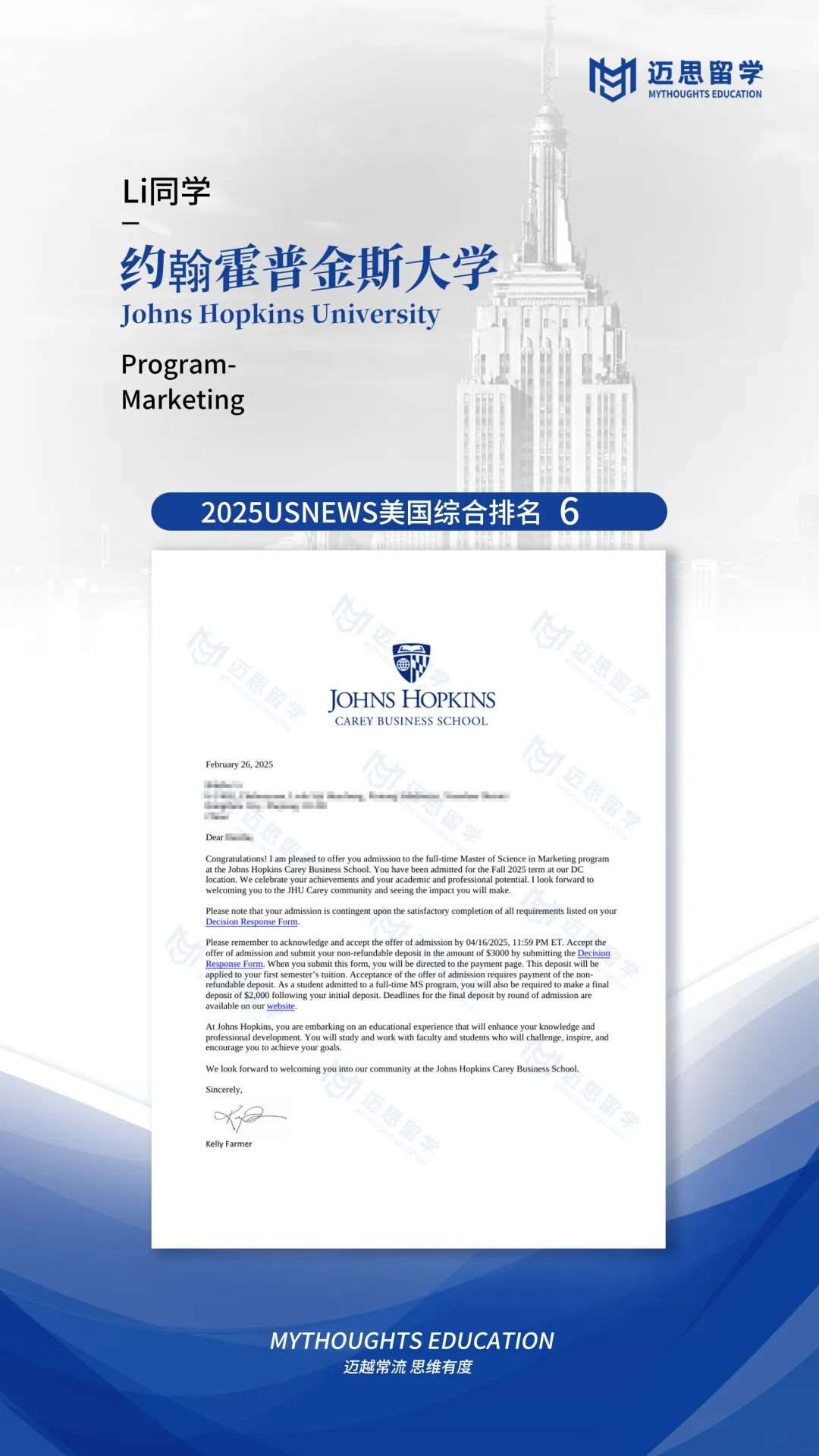 约翰霍普金斯大学|再来五枚JHU录取,从文科商科到理工科都要有~