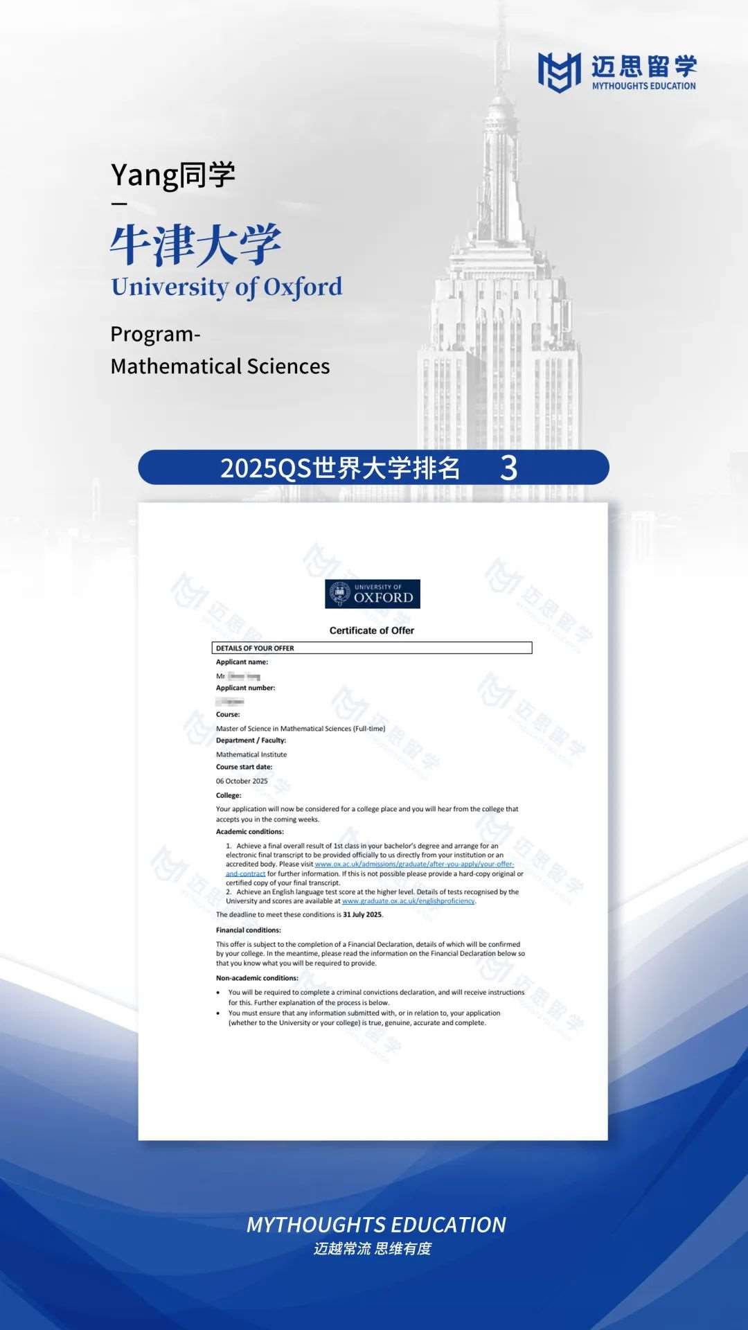 牛津大学|恭喜Y同学问鼎牛津大学,斩获全球Top级数学科学项目!